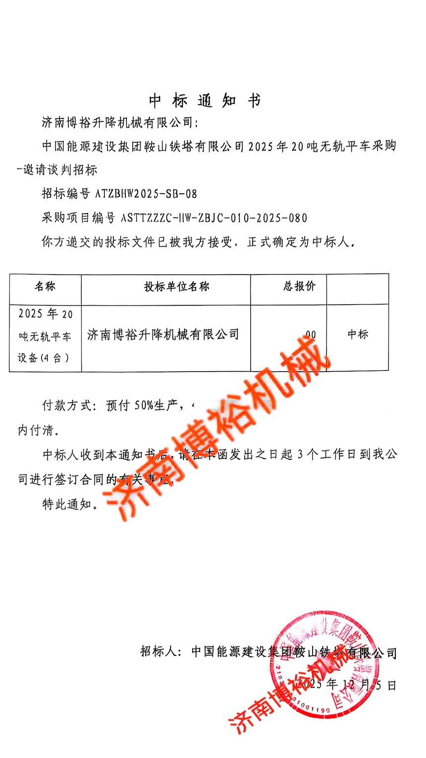 公司经营范围 平板拖车、电动平车、轨道平车、升降作业平台、载货电梯、高空作业车、登车桥、机械零部件的制造、销售;立体车库、立体仓储设备、通用机械、机电设备、五金产品的批发、零售;进出口业务。(依法须经批准的项目,经相关部门批准后方可开展经营活动)济南博裕升降机械有限公司联系电话:13305415597