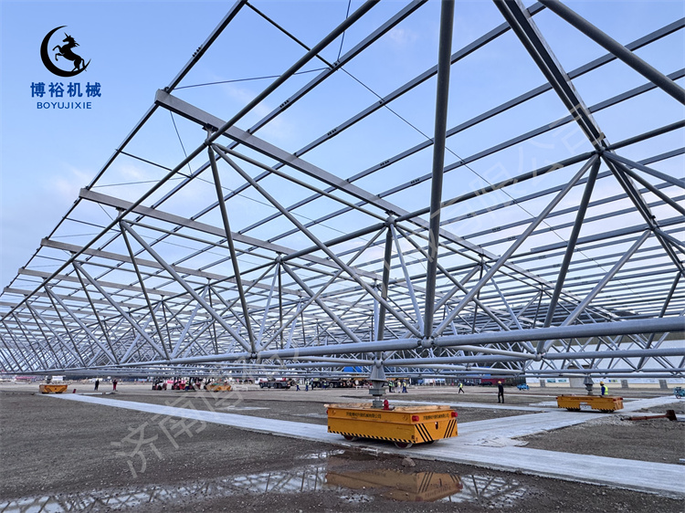 - 无轨电动平车:10T-50T,全向移动、台面旋转、升降功能,适配车间自由转运。